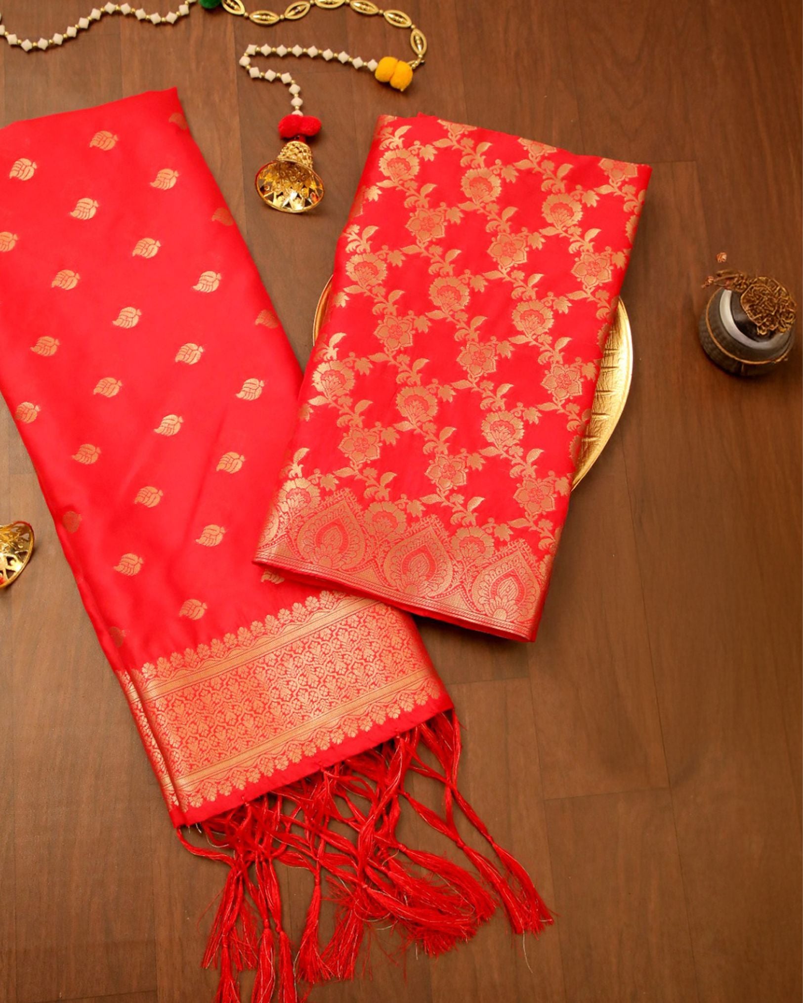 Noor-e-Banaras Lichi Silk Red Brocade Weaving Suit
