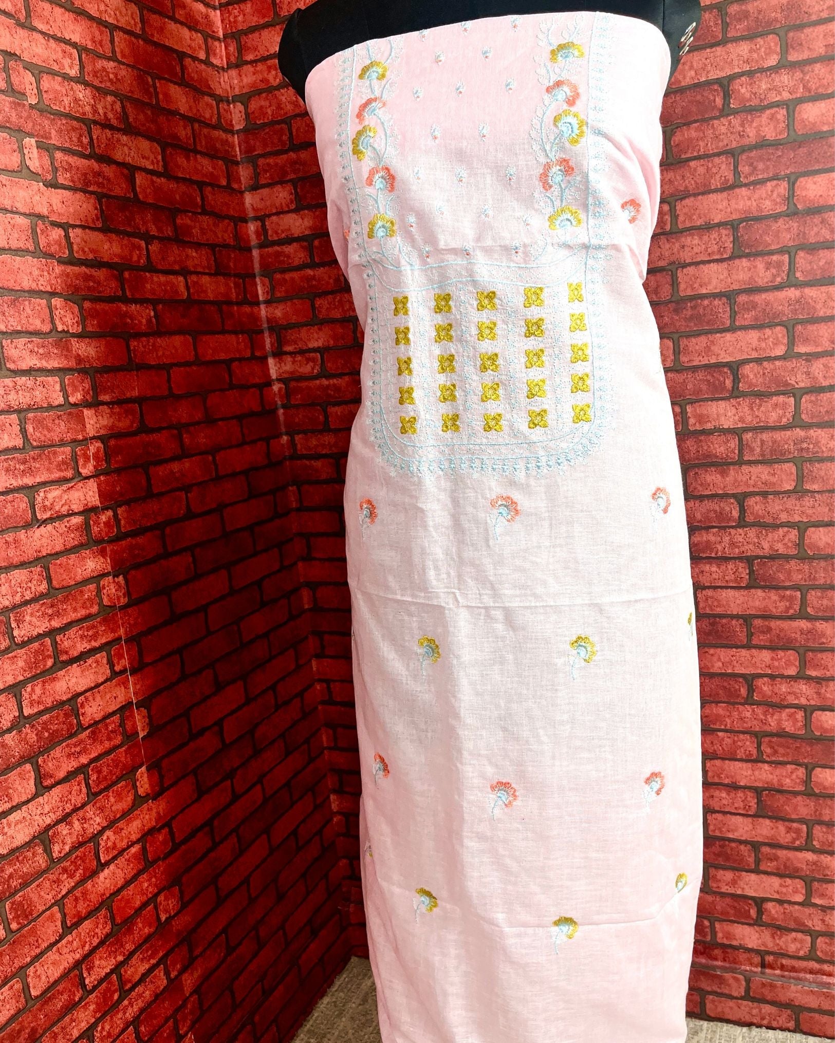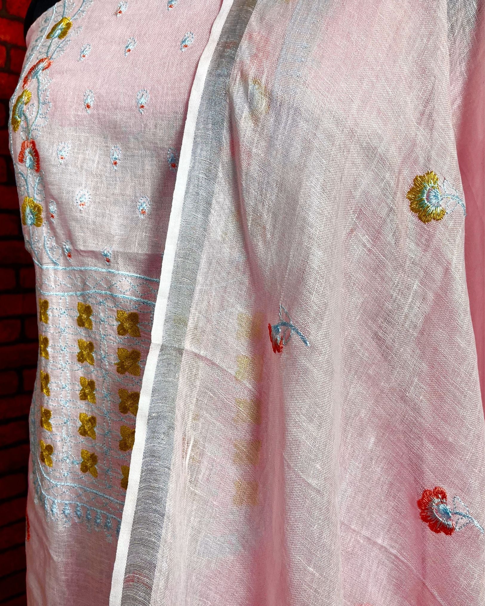 Gulmohar Pure Linen Embroidered Light Pink Suit Piece