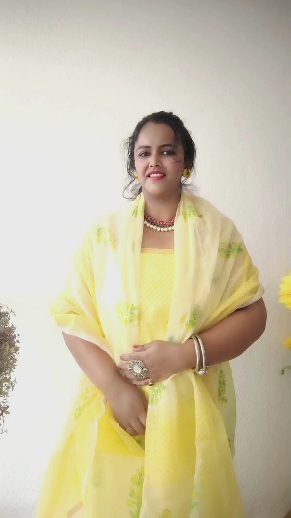 Textured Kota Doria Yellow Suit Handblock Print