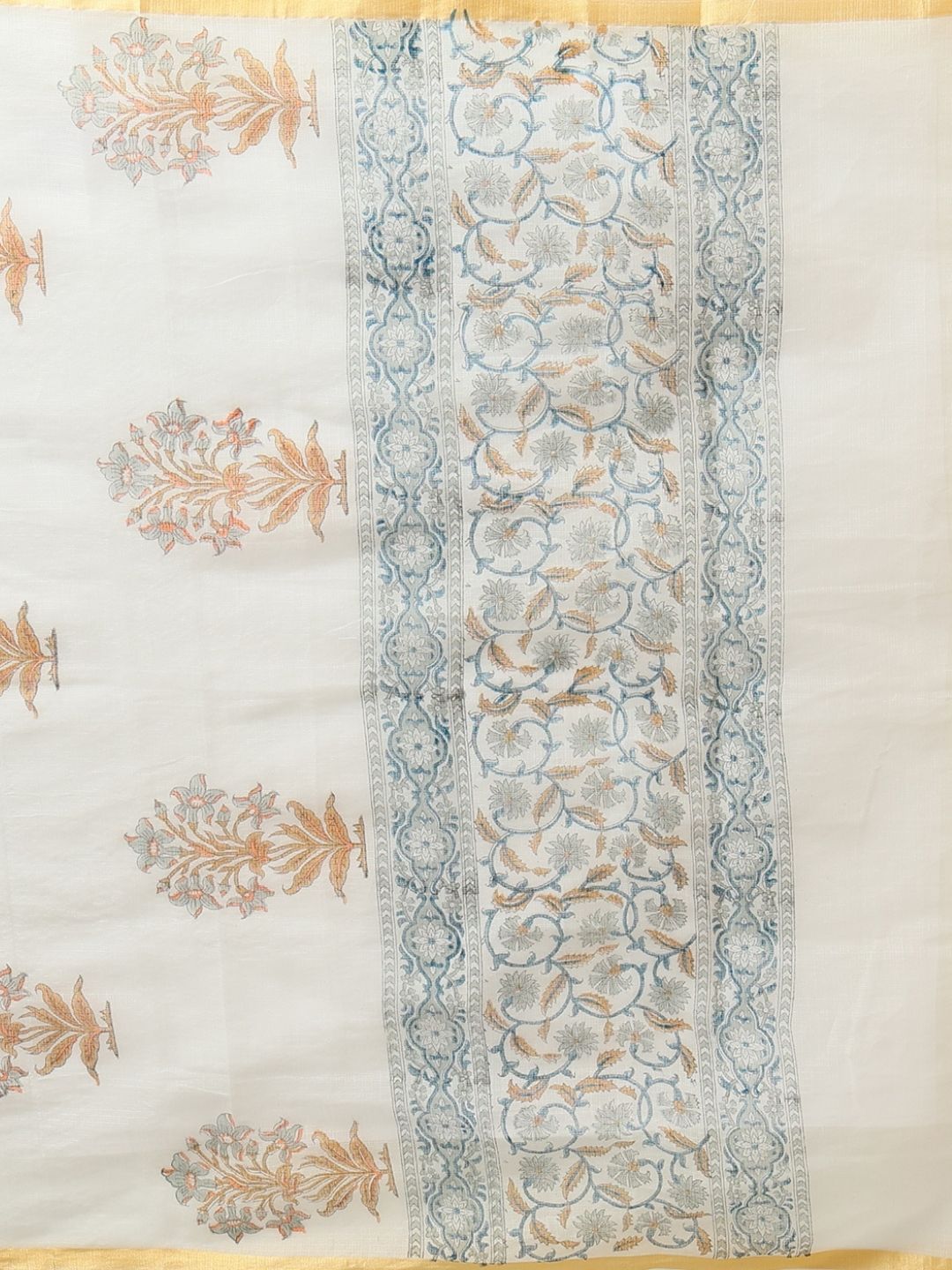 Luminous Silk Linen Embroidered Off White Saree