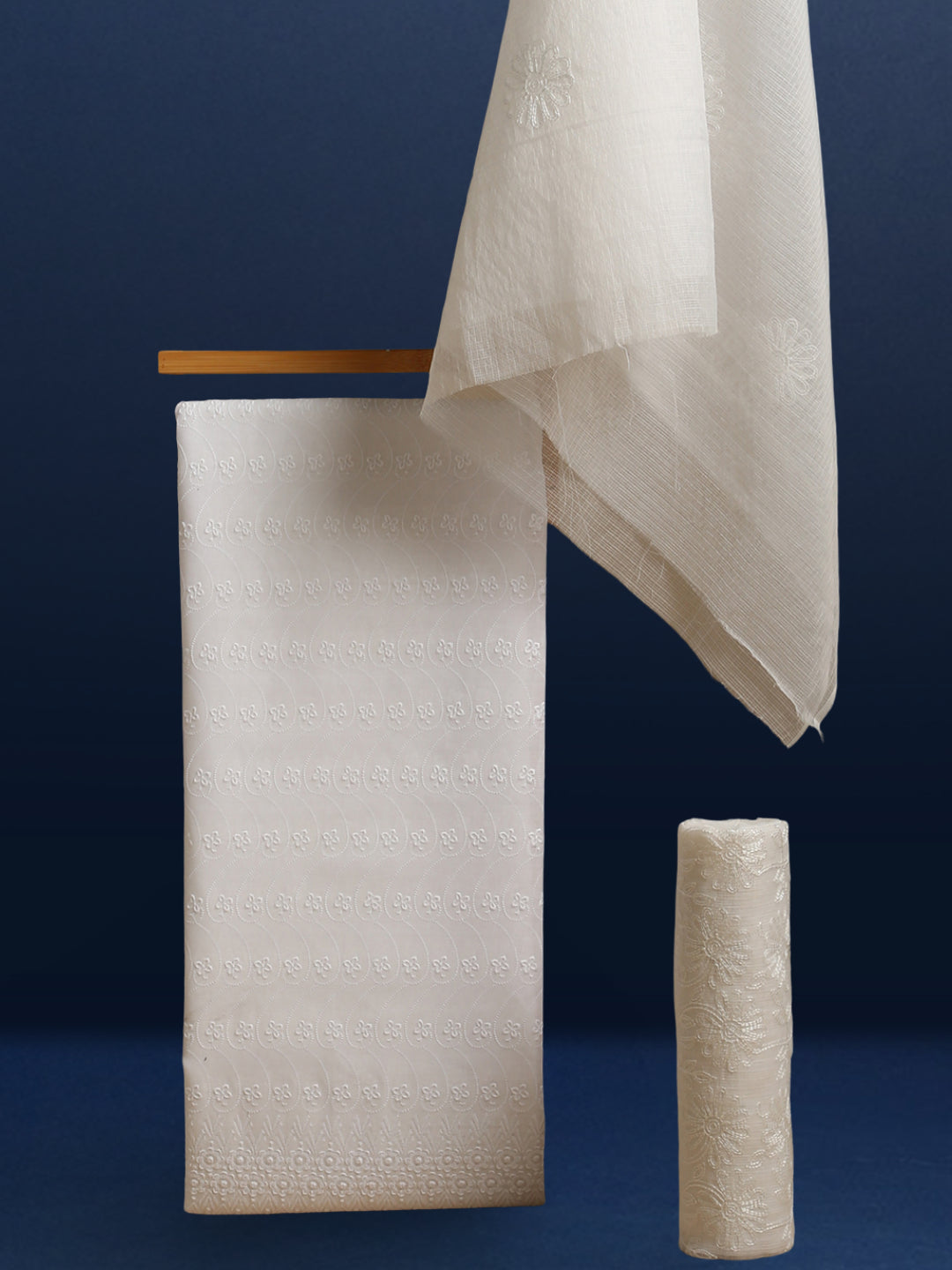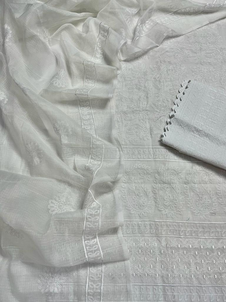 Embroidered Kota Doria Suit White (Top+Dupatta+Bottom)