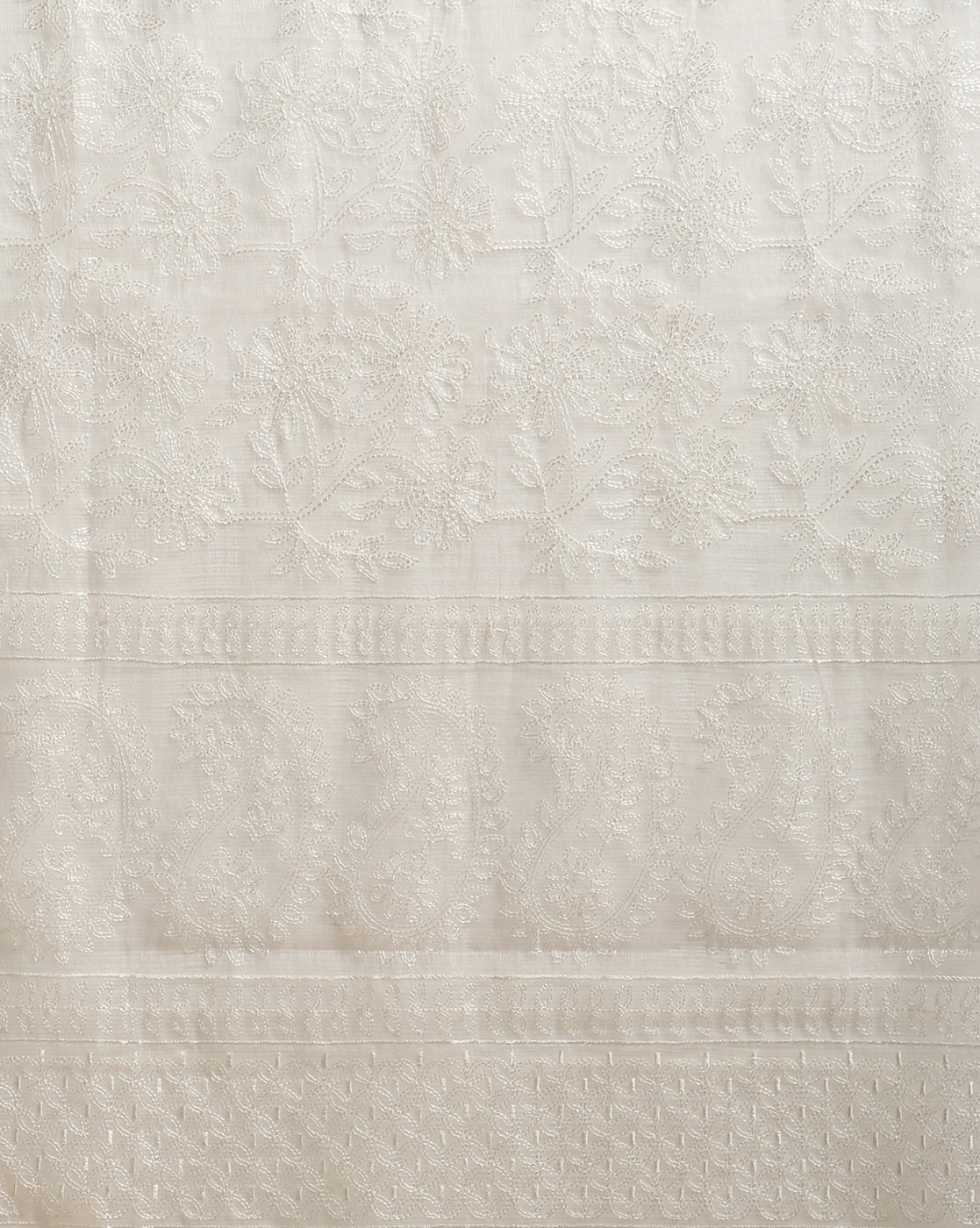 The "Embroidery Work" on this suit material refers to the intricate decorative stitching applied to enhance the fabric's aesthetic appeal. In this particular set, Chikankari embroidery is featured on the bottom (salwar or pants), adding elegance and grace.