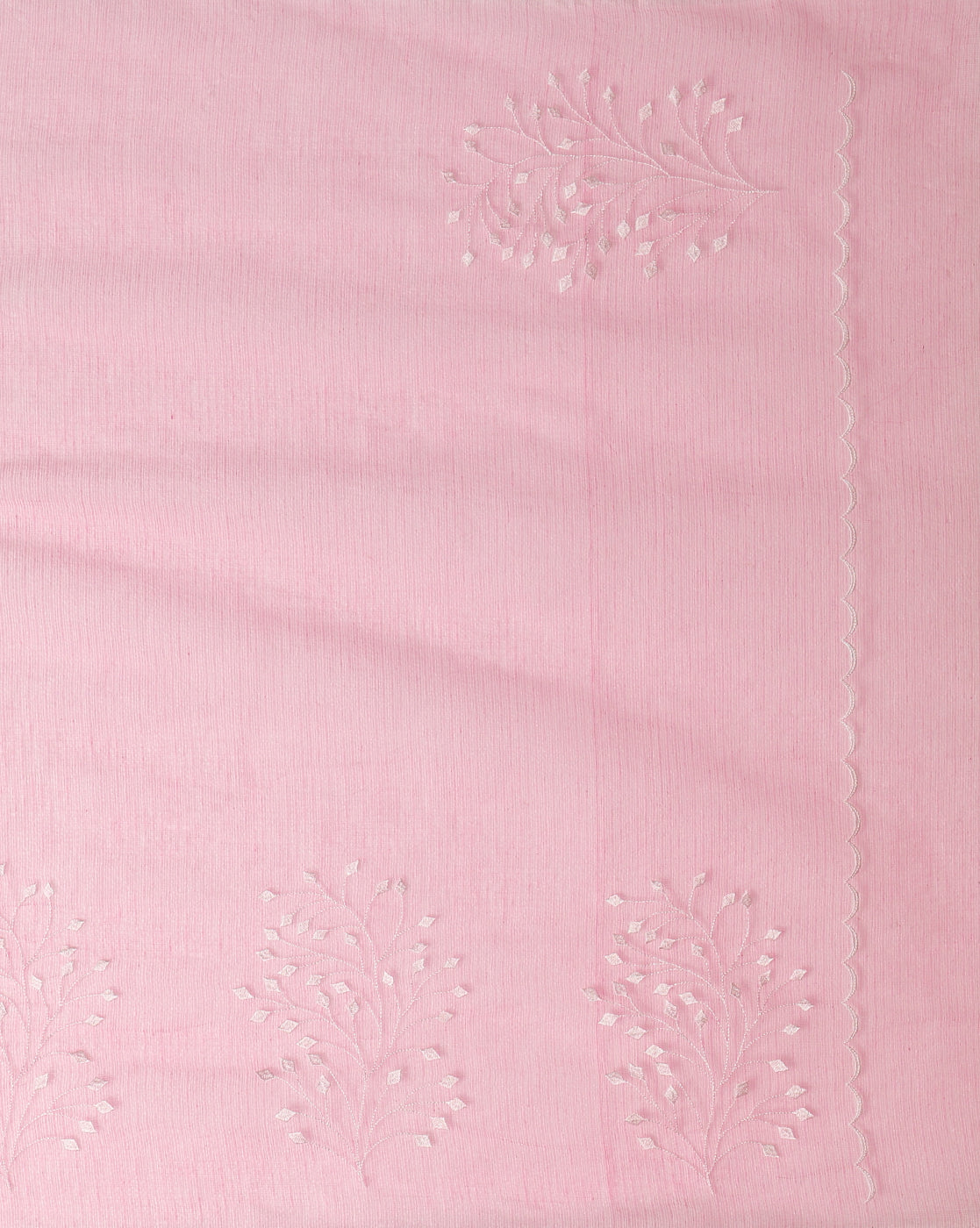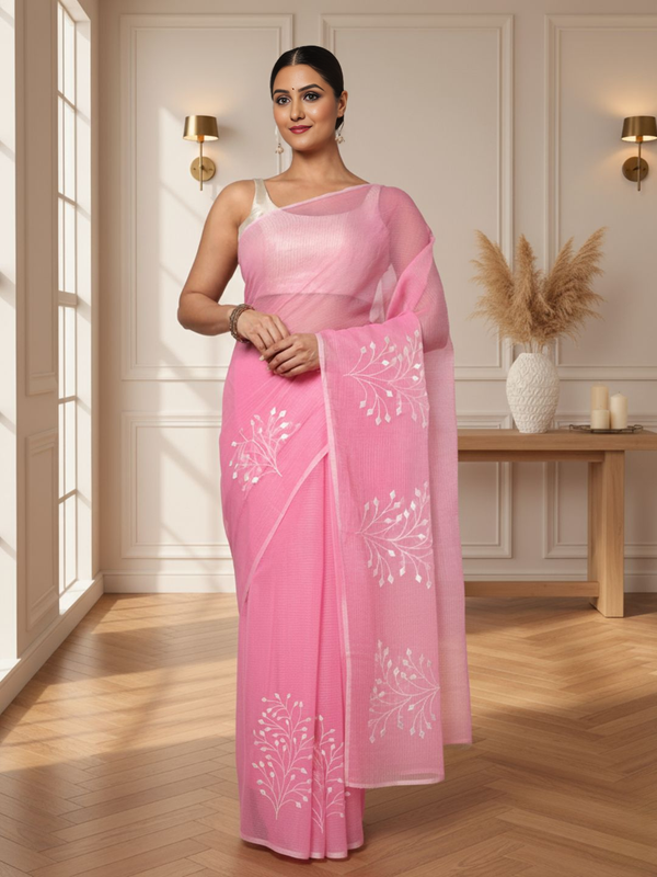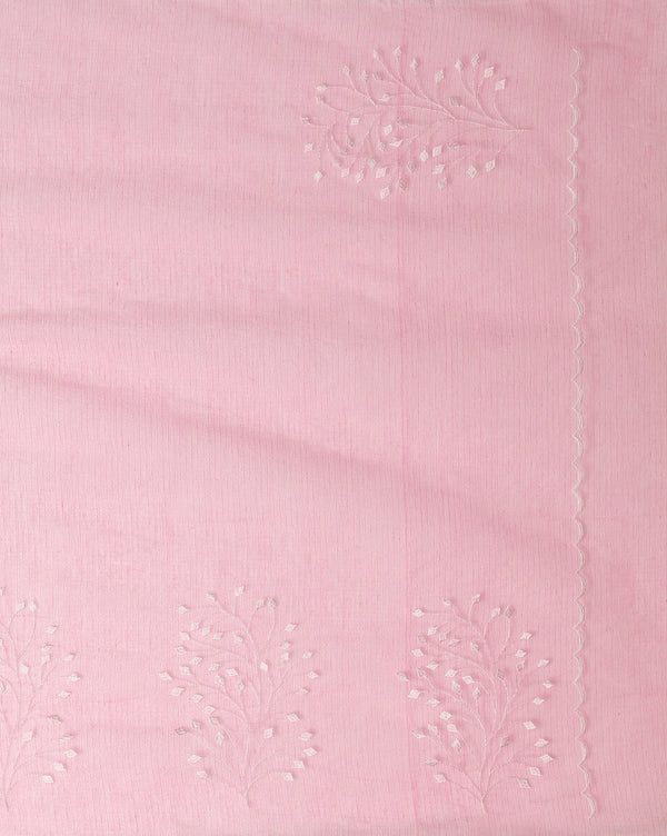 Trendy Kota Doria Cotton Bel Embroidery Pink Saree Handdyed