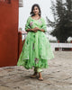 Hawa Hawai Chikankari Pure Mul Cotton Saree Lime Green