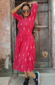 Embrace traditional craftsmanship with our Handcrafted Cotton Ikkat Dress. Featuring intricate Ikkat patterns on soft cotton fabric, each dress exudes timeless charm and elegance, perfect for adding a touch of heritage to your wardrobe.