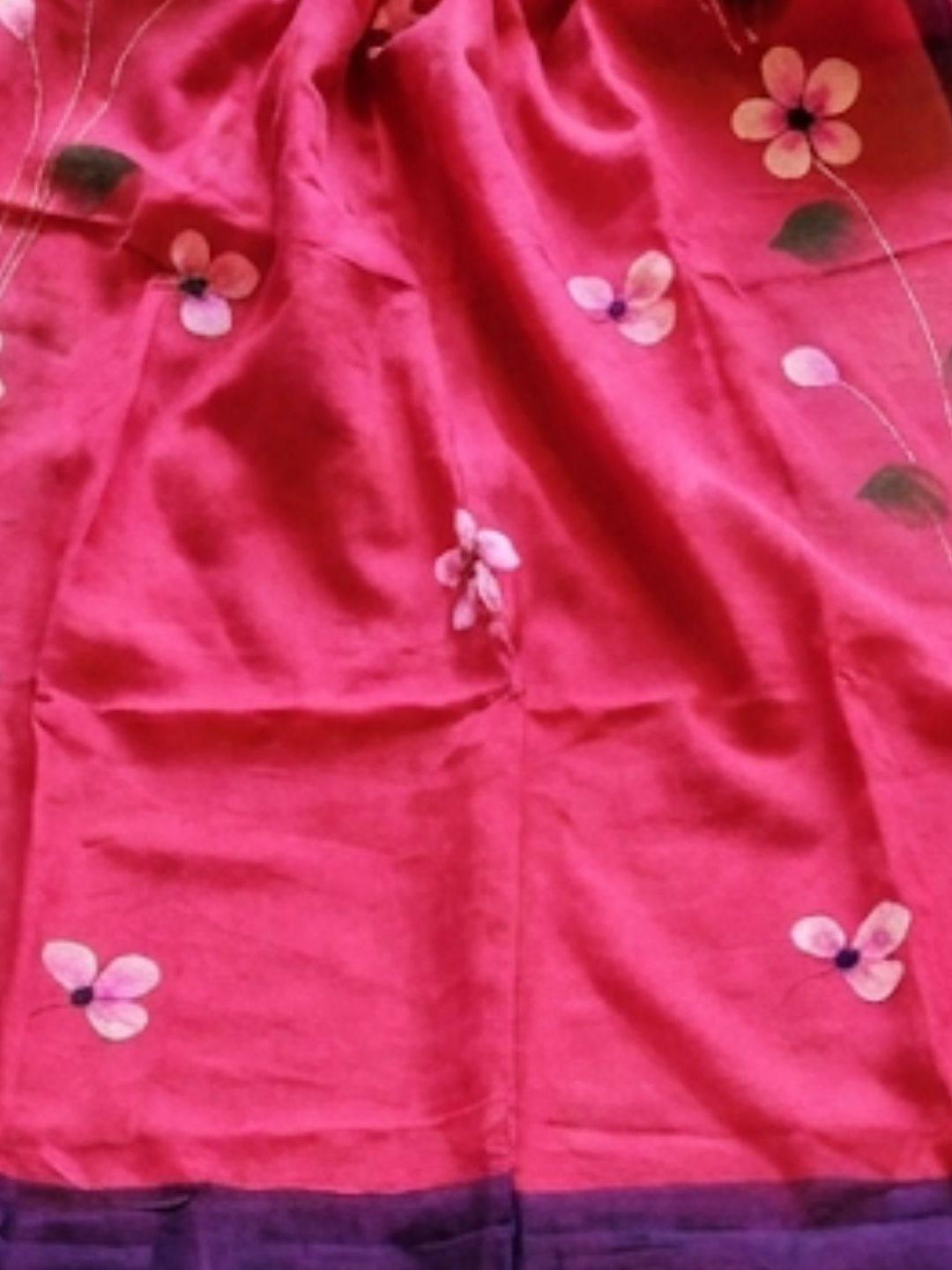 Ranglekha Pure Mul Cotton HandPainted Saree Hot Pink