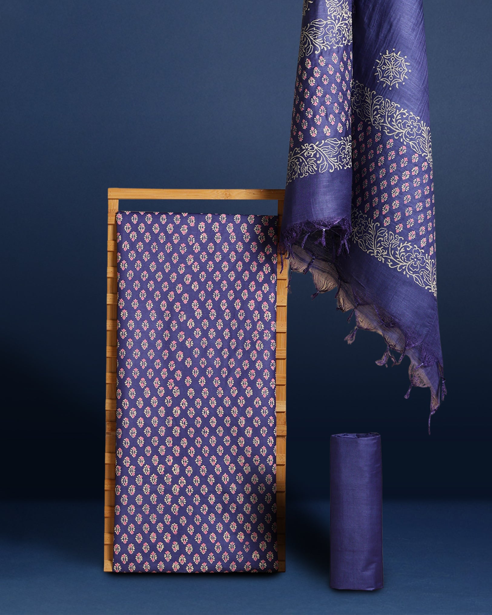 A Suit Piece with Bottom and Dupatta refers to a set of fabric pieces used to create a traditional Indian suit ensemble. It includes a fabric for the suit's top (kameez), bottom (salwar or pants), and a matching or contrasting dupatta (scarf).