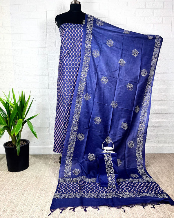 Katan Silk Decorous Blockprint Blue Suit
