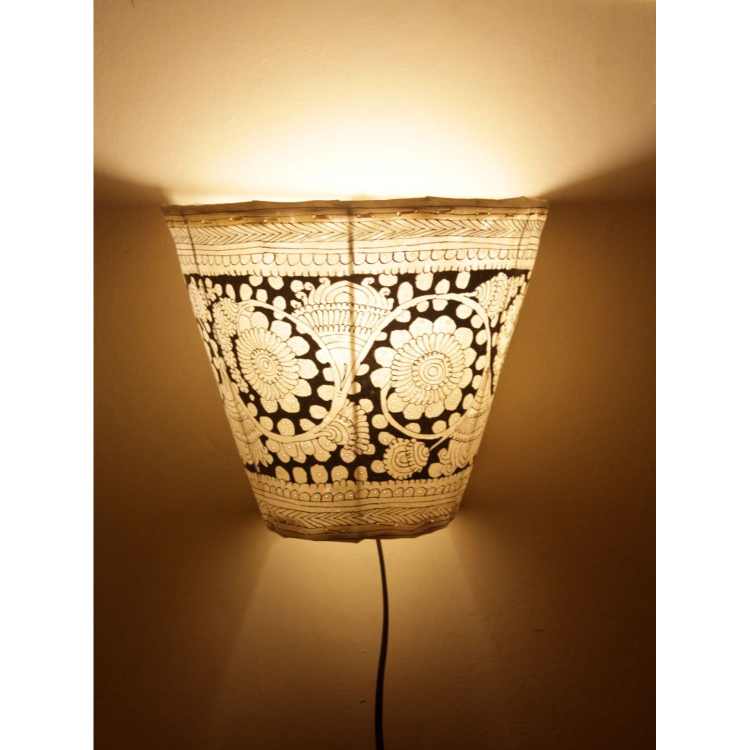 Beaming Flower Kalamkari Handpainted Wall Mount Leather Lamp -8.5 Inch