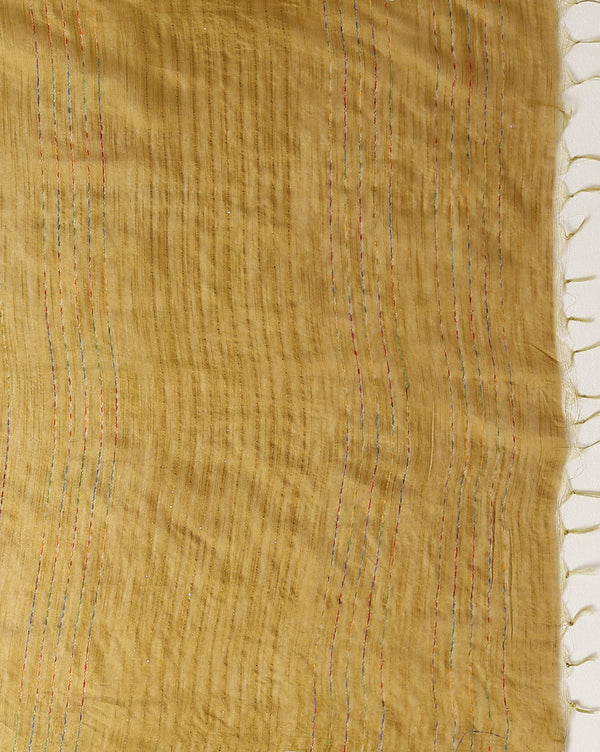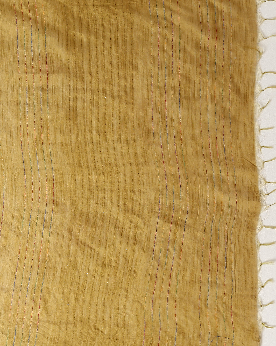 Work: Kantha Embroidery, Hand Dyeing Measurements: 6.3-6.4 Meter (Including Blouse) Blouse Piece: Yes Fabric: Kota Doria Silk Package Contains: 1 Saree with Blouse (attached) Wash Care: Dry Clean Preferred or Gentle Handwash with Mild detergents. Wash separately. Dry in Shades. Disclaimer: Color hues may slightly vary from that which appears in the image due to different screens and displays Minor irregularities is the uniqueness of handcrafted products and makes each piece exquisite