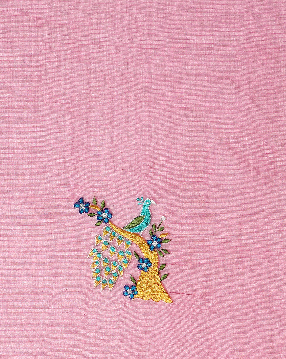 A handcrafted blouse refers to a blouse piece that comes with the saree. It is unstitched and designed to be tailored according to the wearer's measurements. The blouse is crafted to complement the saree's design and embroidery.