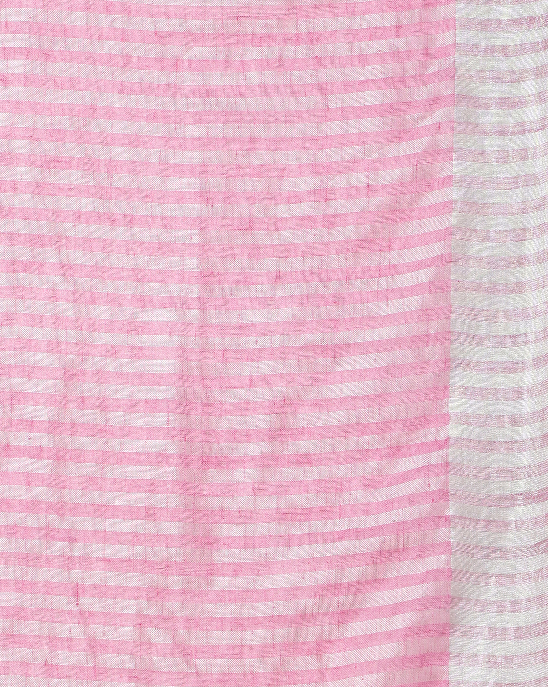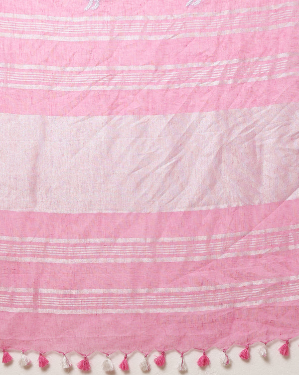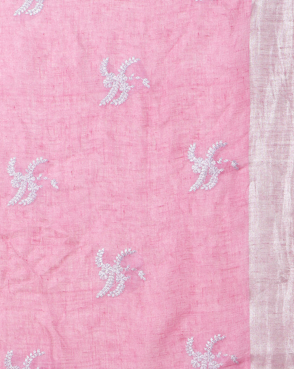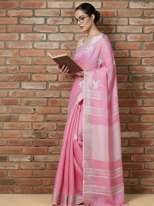 Blissful Pure Linen Embroidered Handloom Pink Saree
