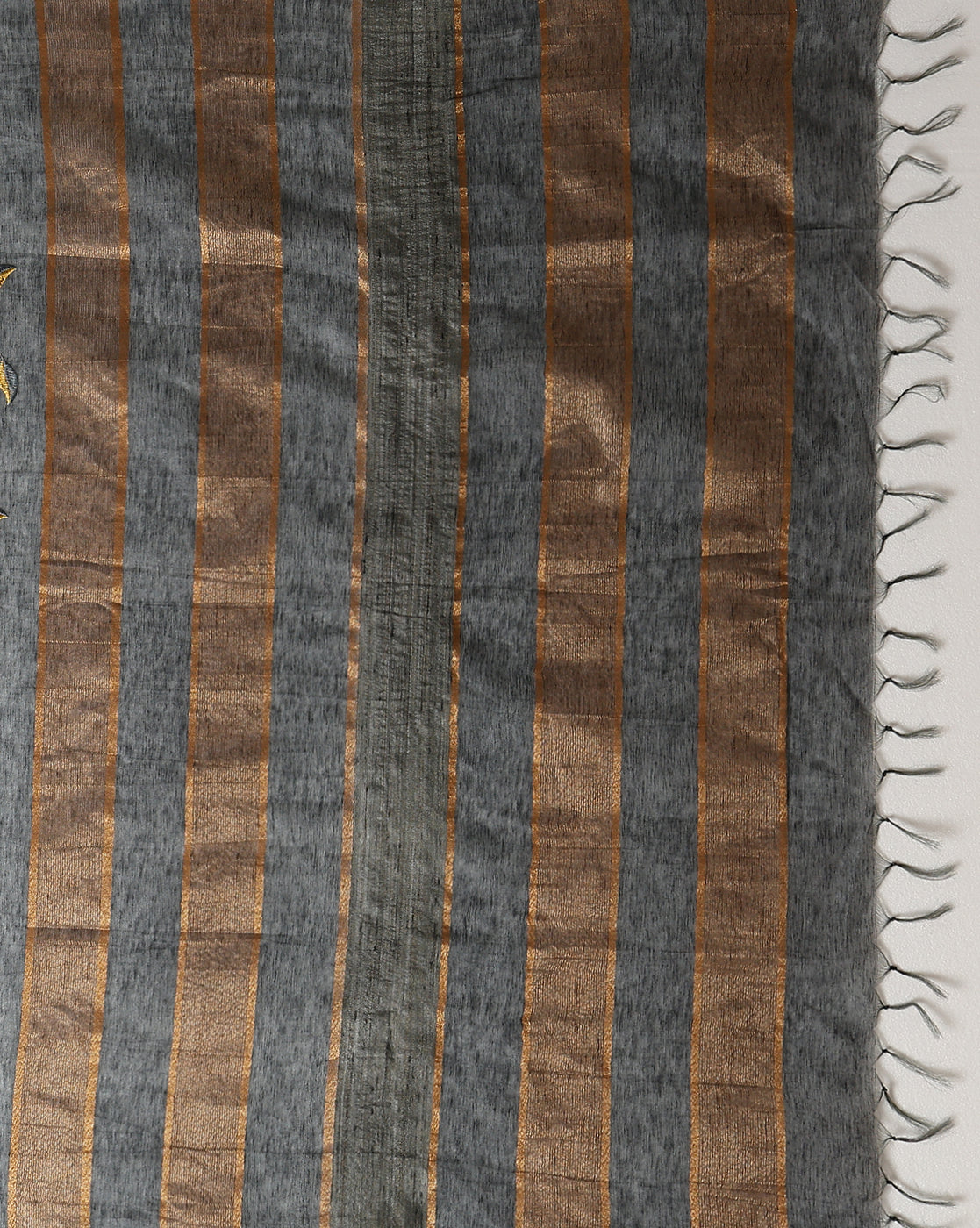 Zari Sutra Maheshwari Silk Charcoal Gray