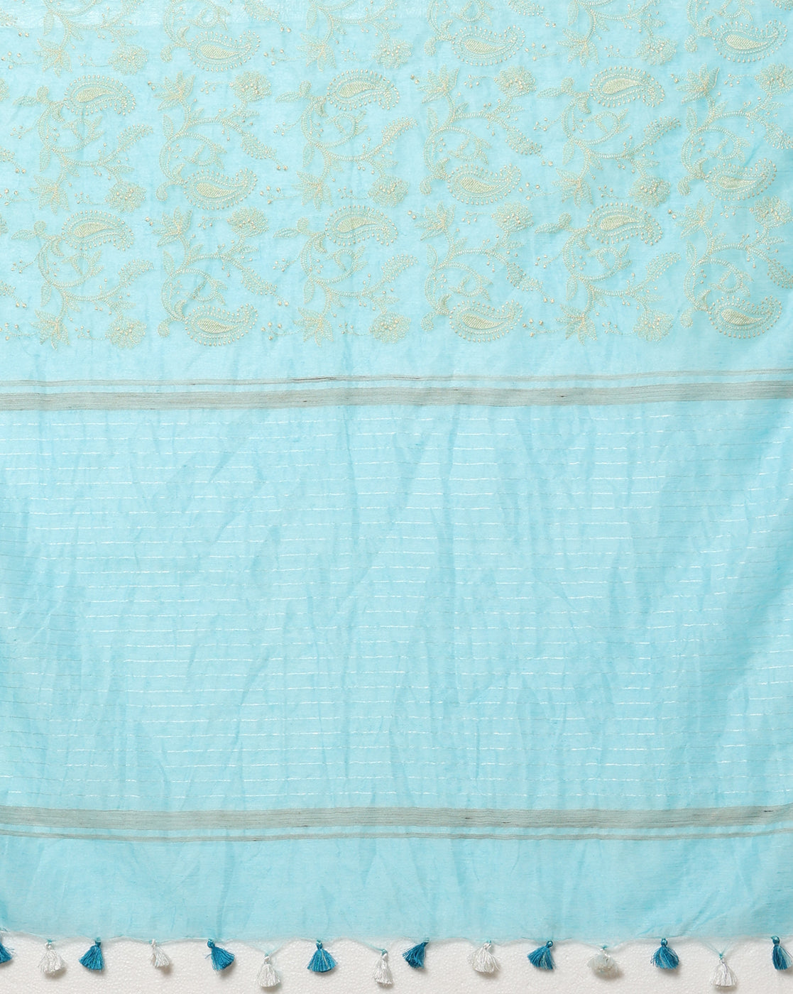Adorable Pure Kota Linen Embroidery Saree Blue