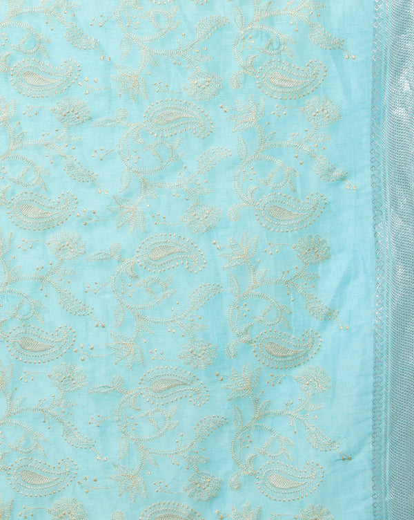 Zari Sutra Calm Blue Maheshwari Silk Sui