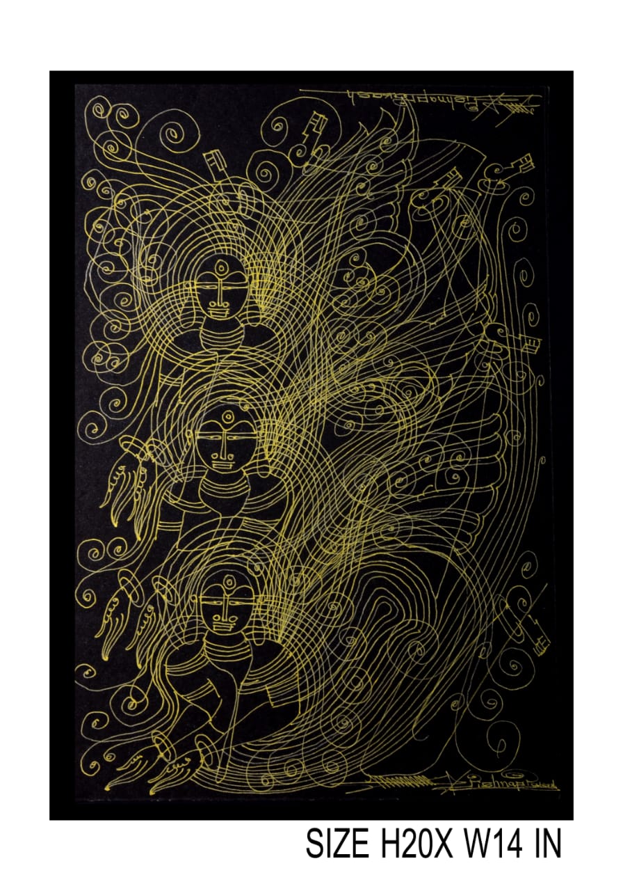 The size of "The Surpur Line Art Painting" is 22 x 16 inches, making it a medium-sized artwork suitable for display in various settings.
