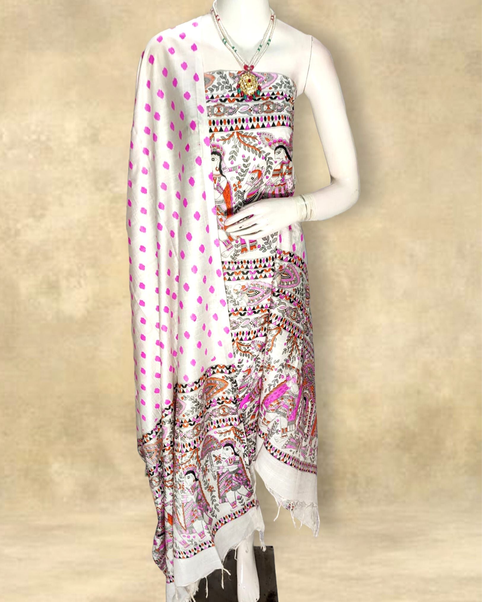 Katan Silk Melodic Blockprint Off White Suit