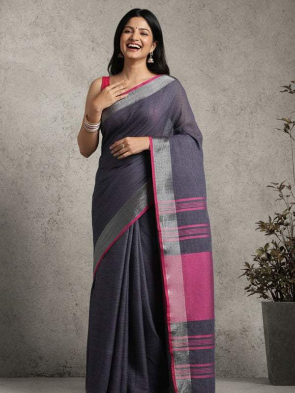1. What is a Handwoven Pure Linen Saree with Plain Body and Striped Pallu?