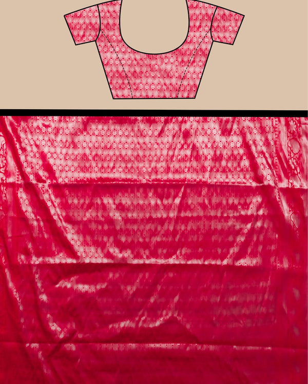 A Banarasi Tissue Semi Silk Zari Weaving Saree is a lightweight, shimmery saree made using semi-silk yarns blended with tissue threads. It features traditional Banarasi weaving with intricate zari motifs, giving it a lustrous and festive look, perfect for special occasions.