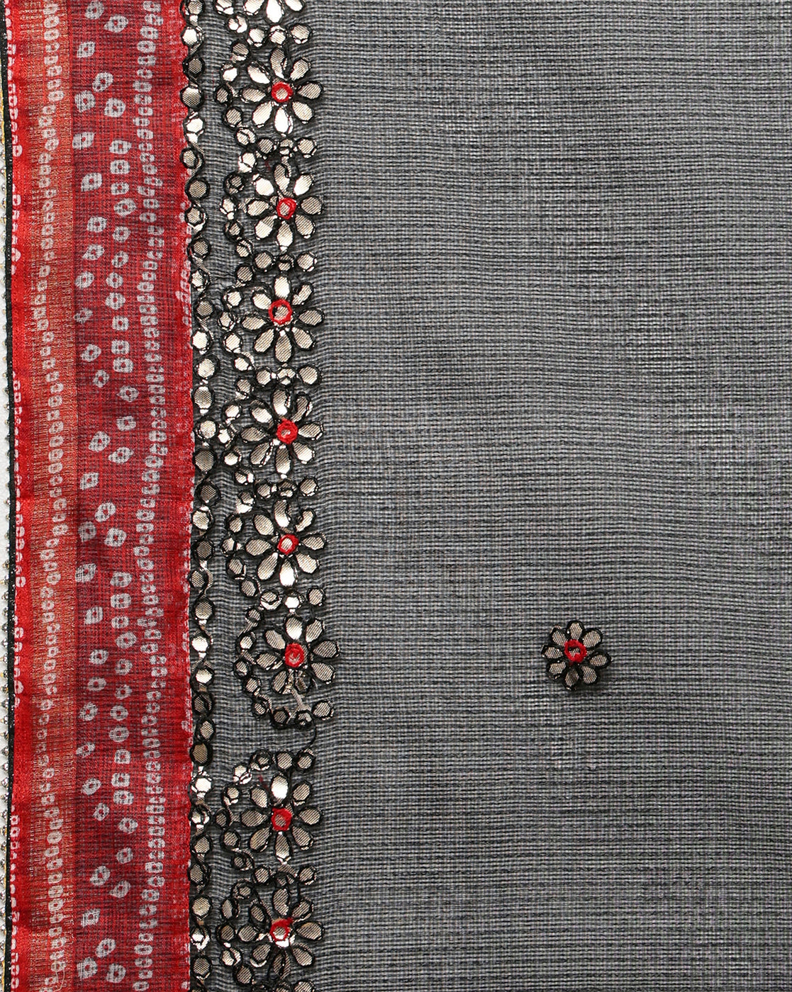 Nirmal Pure Khadi Cotton Sequence Saree Gray