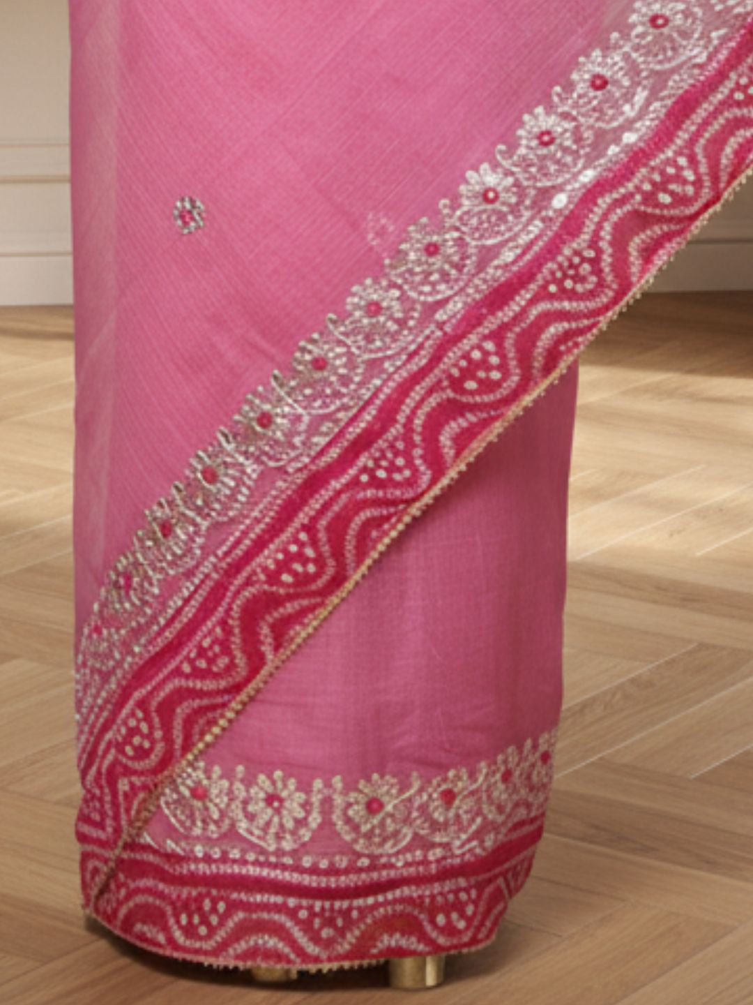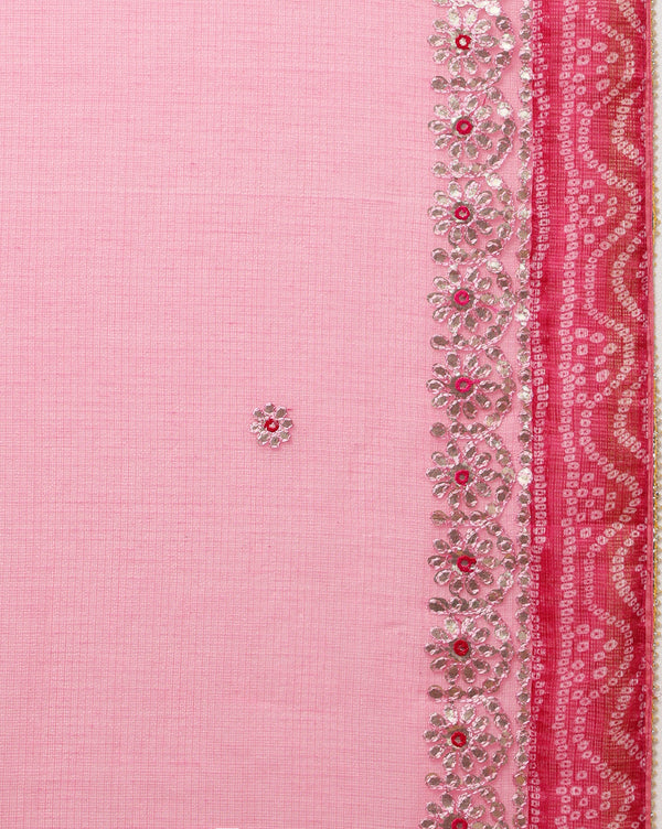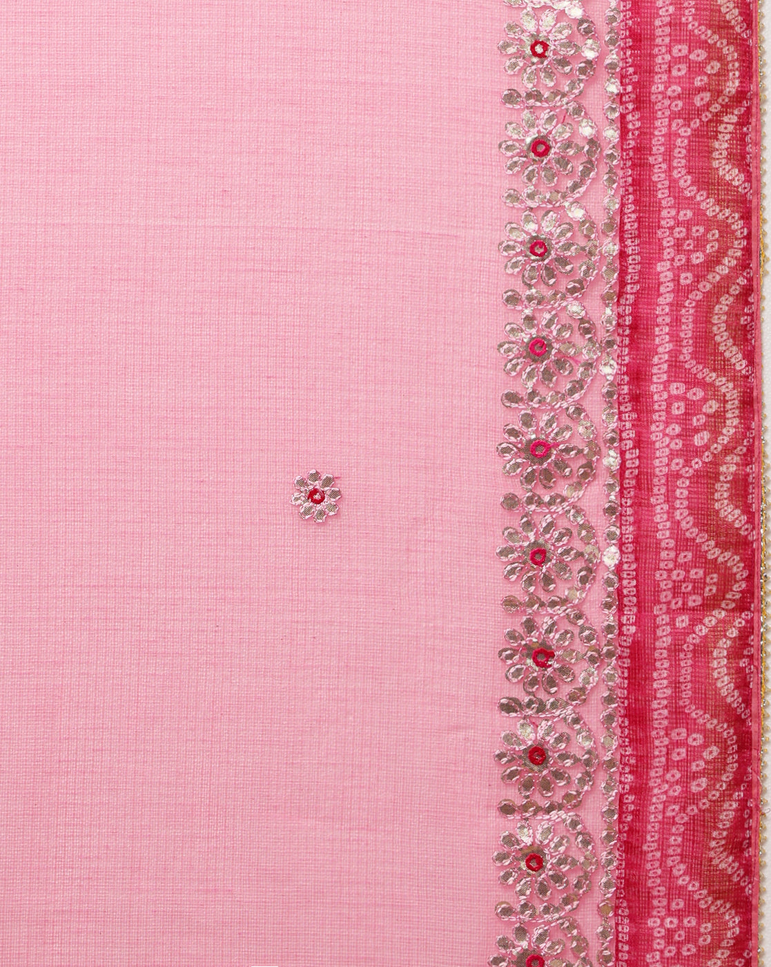 Gilded Grace Kota Cotton Gota Patti Saree Pink