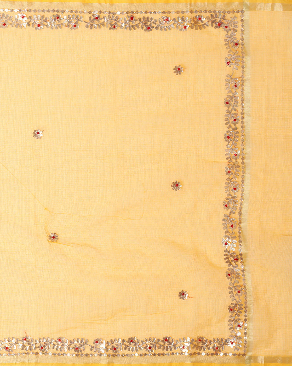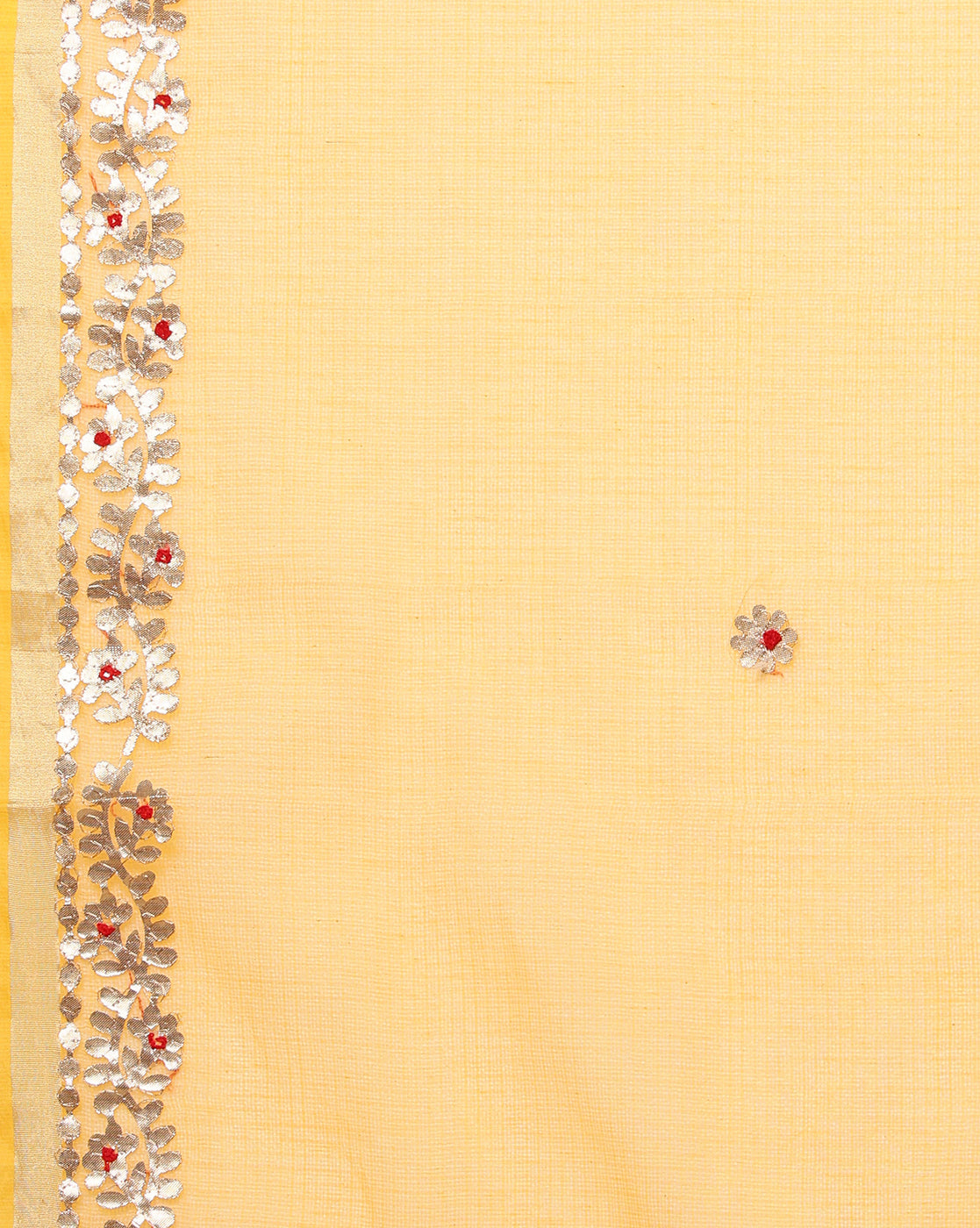 Gilded Grace Kota Cotton Gota Patti Yellow Saree