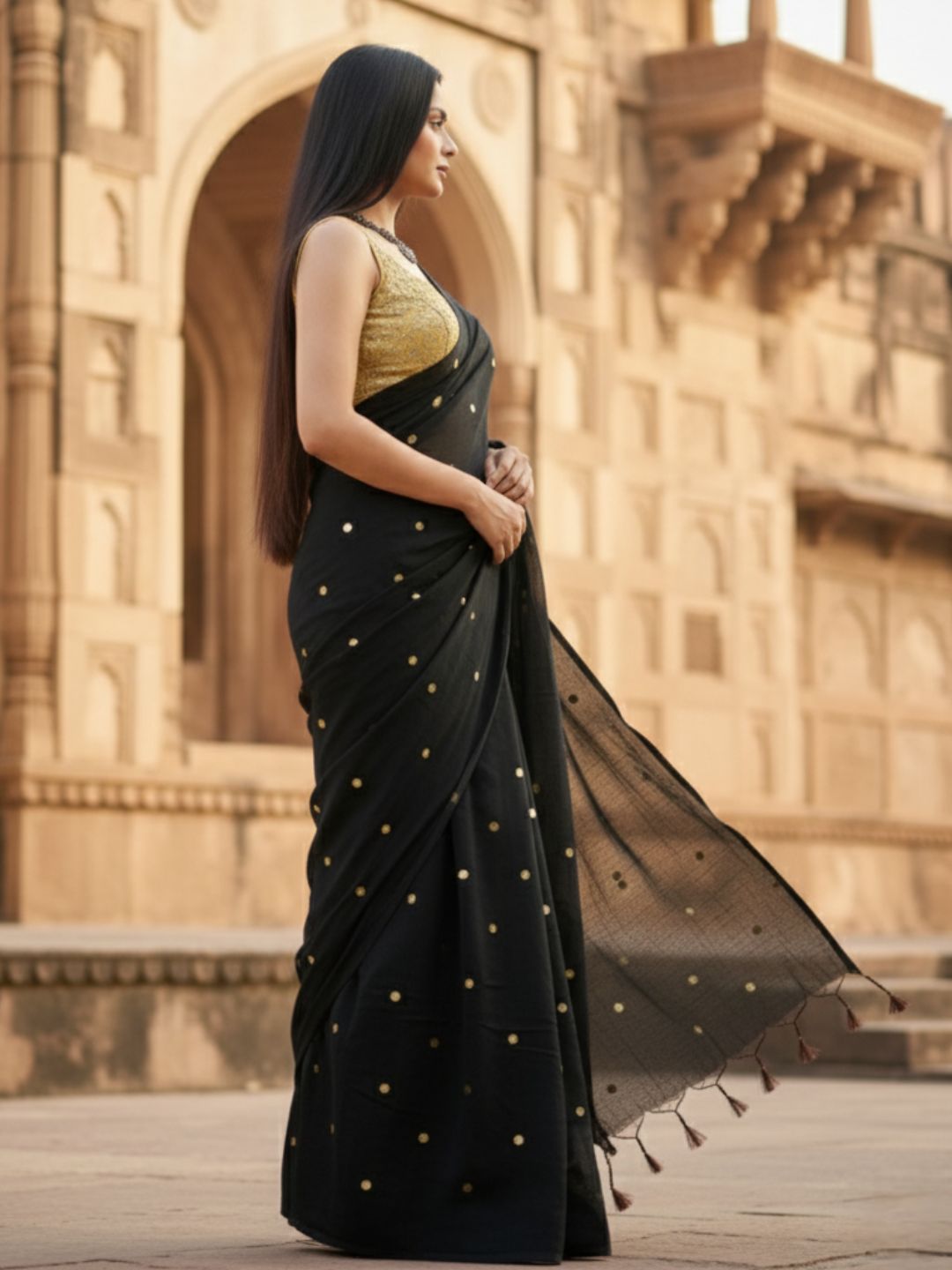 Gini Baani Pure Mul Cotton Sequin Black Saree