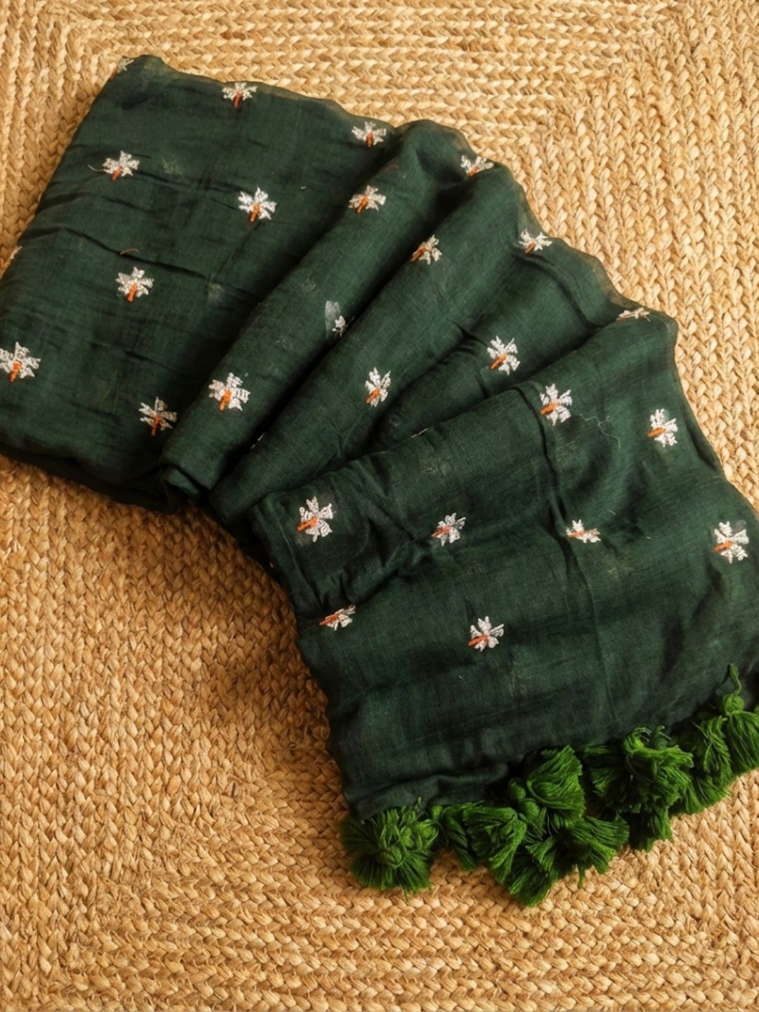 Hawa Hawai Embroidery Pure Mul Cotton Saree Dark Green