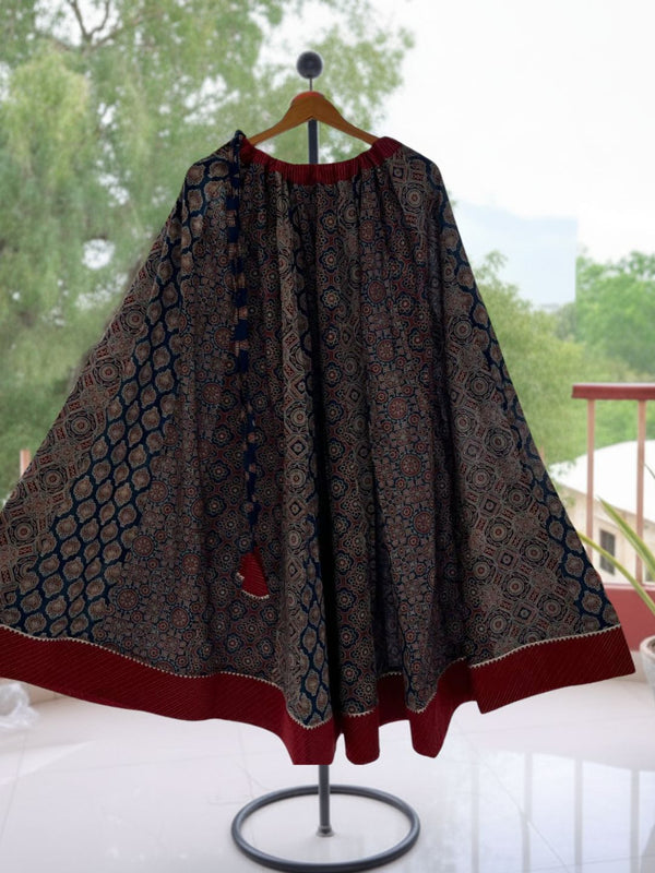 Kalara Ajrakh Print Lehanga Skirt Deep Indigo