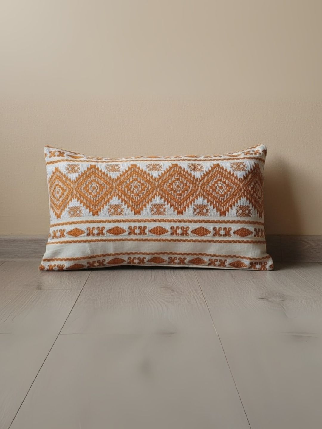 Khamma Ghani Jaquard Beige Pillow Cover (Set of 2)