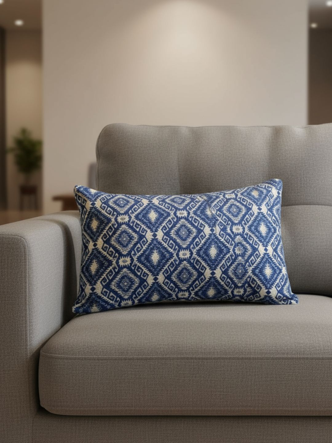 These pillow covers are made from premium cotton blend jacquard fabric, known for its intricate woven patterns and soft yet durable texture. The fabric is handwoven on traditional looms to achieve rich designs and long lasting quality.