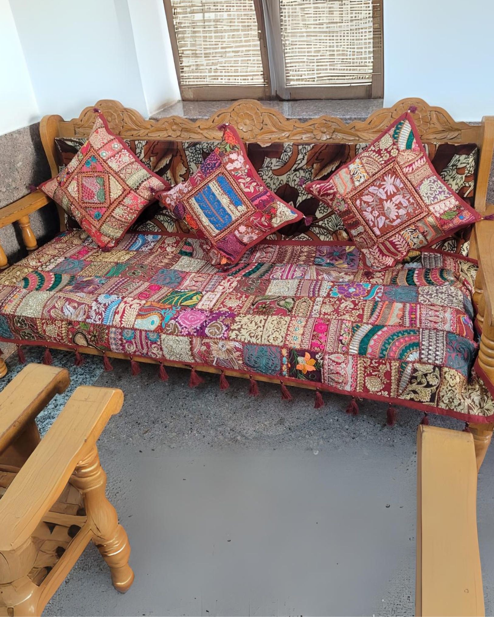 Khamma Ghani Kambadiya Rich Maroon Sofa Throw & Cushion Cover