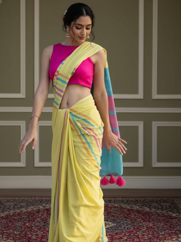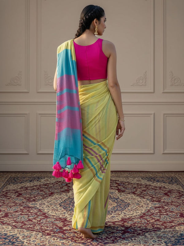Nirmal Pure Khadi Cotton Handloom Yellow Saree
