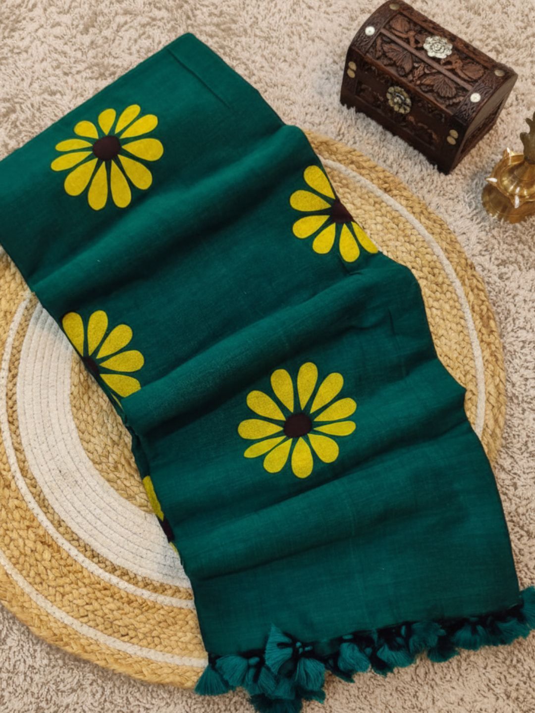 Nirmal Rang Dark Green Pure Cotton Handloom Saree