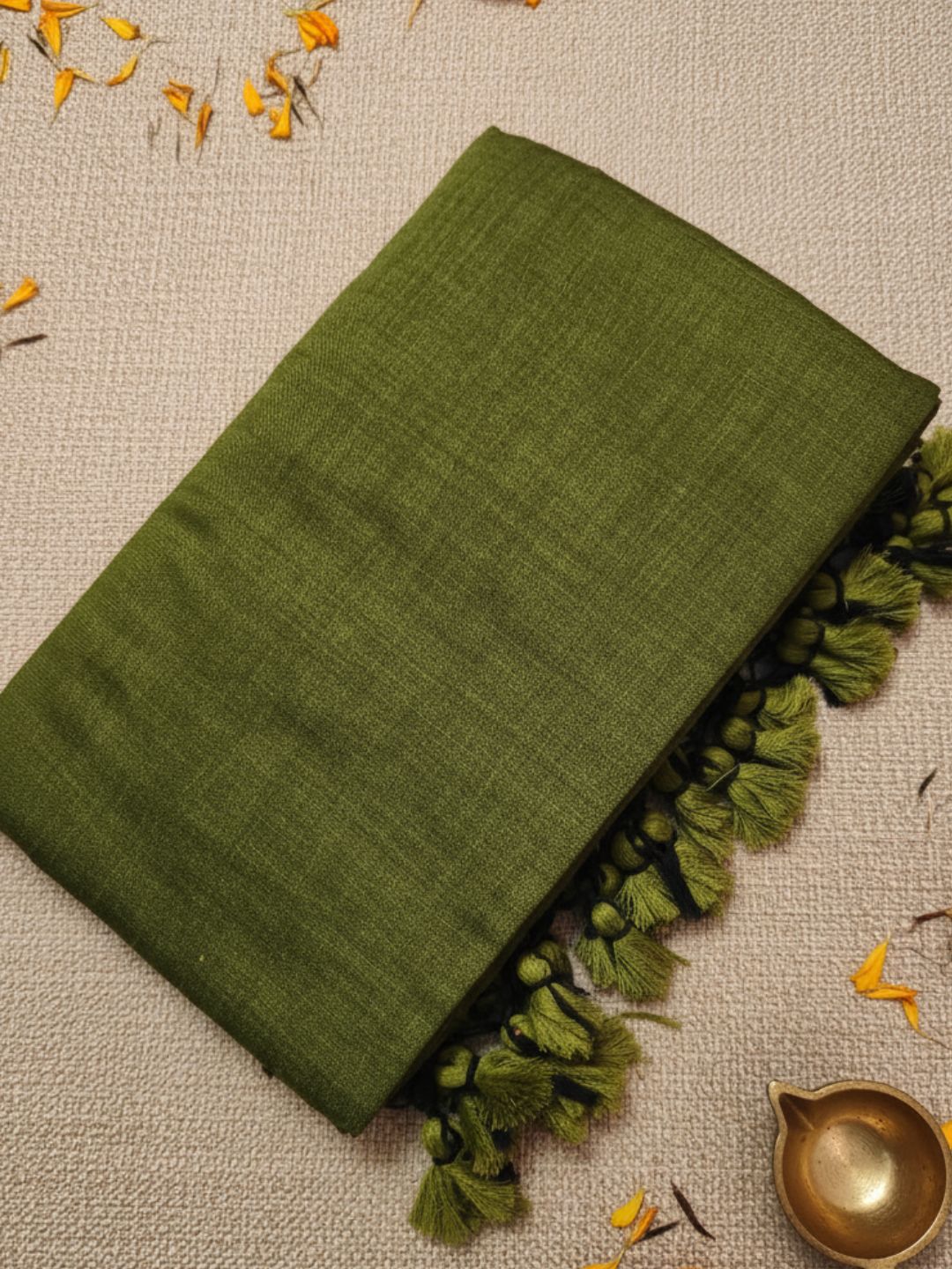 Nirmal Pure Khadi Cotton Sequin Saree Olive Green