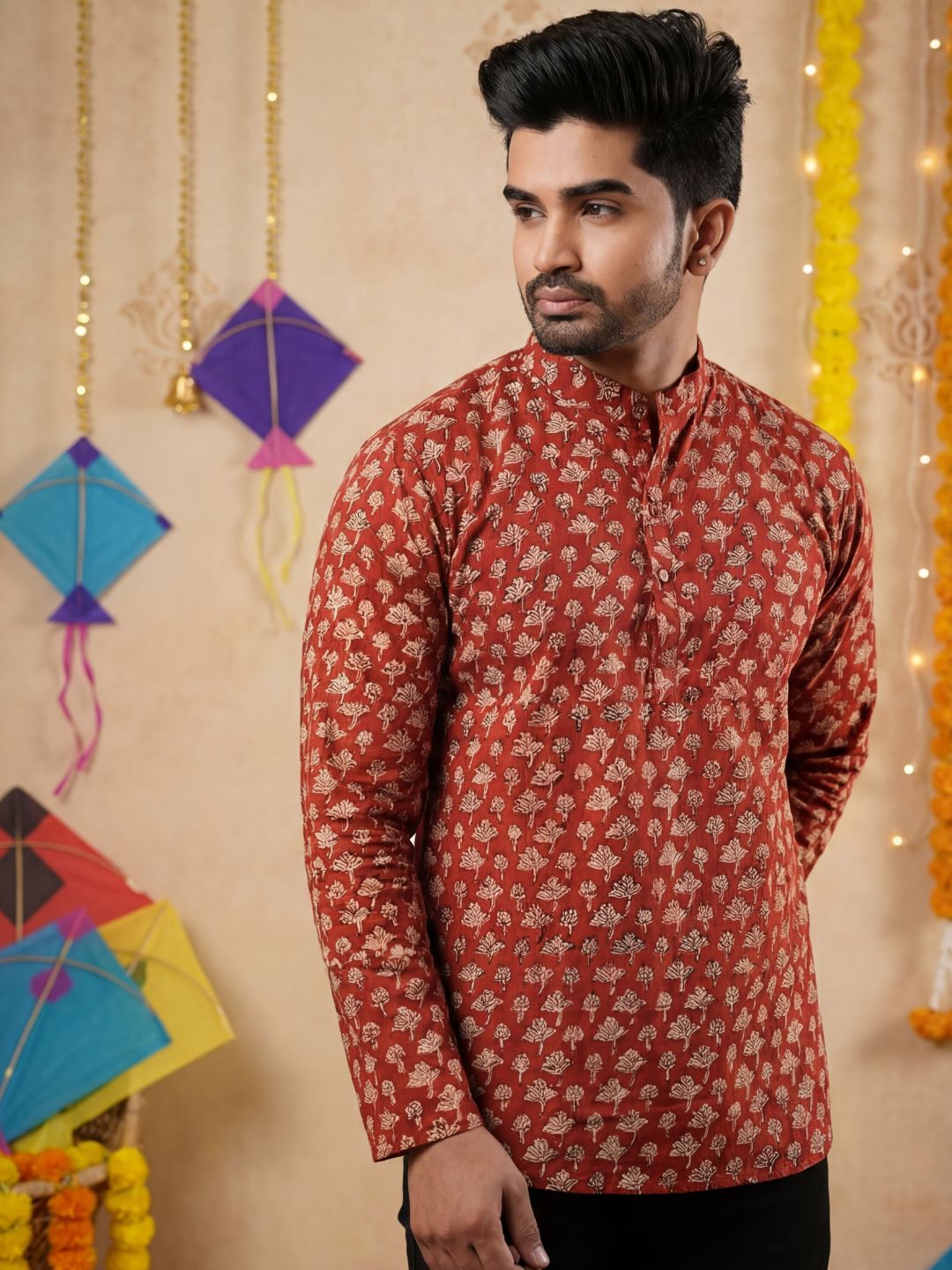 Noble Echo Pure Cotton Blockprint Short Kurta Brick Red