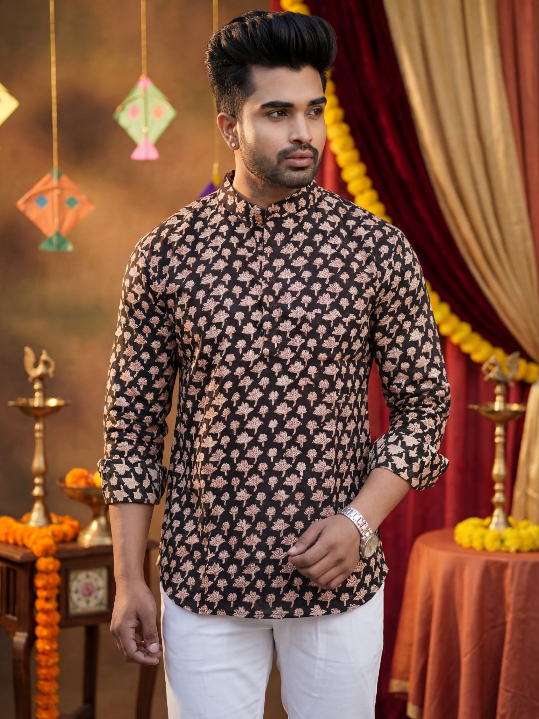 Noble Echo Pure Cotton Blockprint Short Kurta Cool Black
