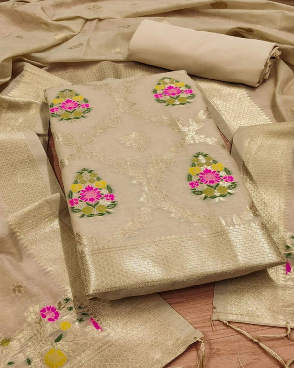 Noor-e-Banaras Beige Brocade Weaving Cotton Suit