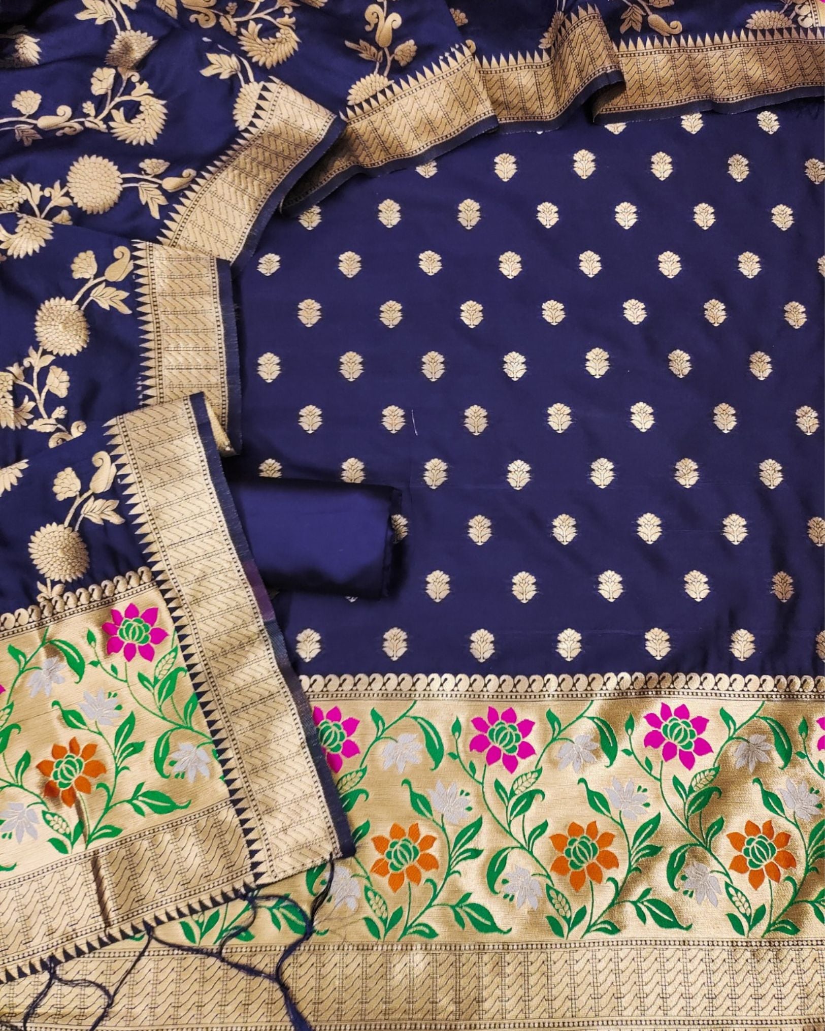 Zari Sutra Maheshwari Silk Deep Blue Suit