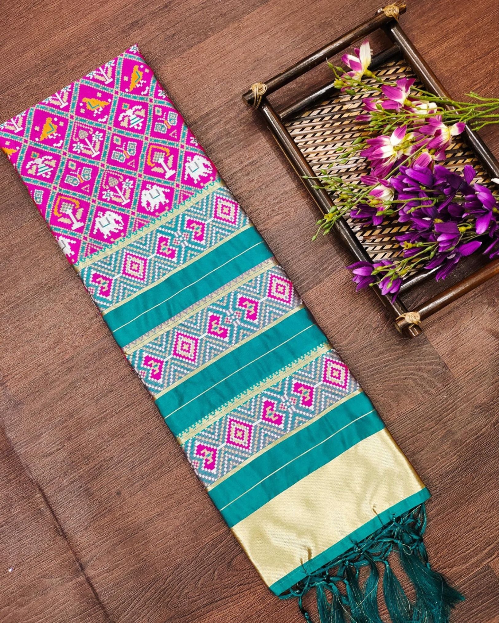 Noor-e-Banaras Lichi Silk Magenta Pink Patola Dupatta