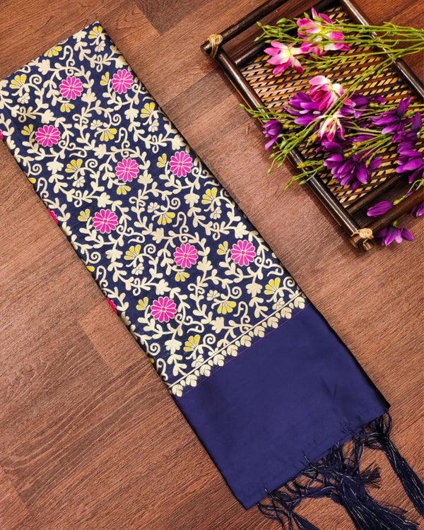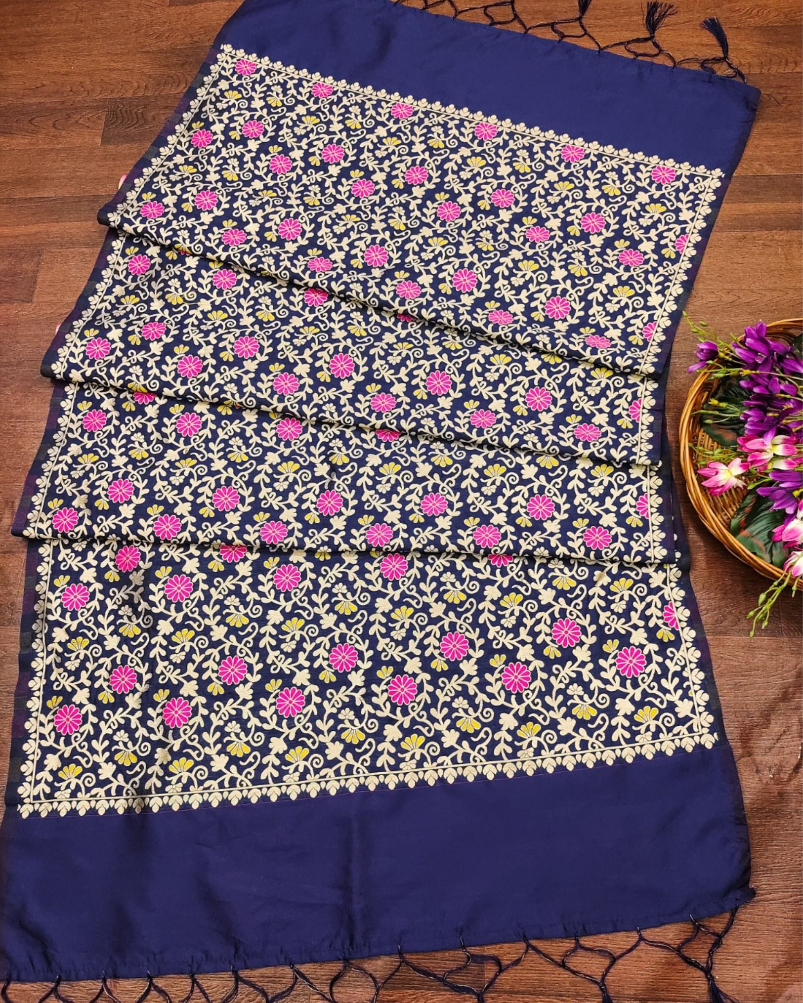 Noor-e-Banaras Silk Dupatta Navy Blue Brocade Weaving