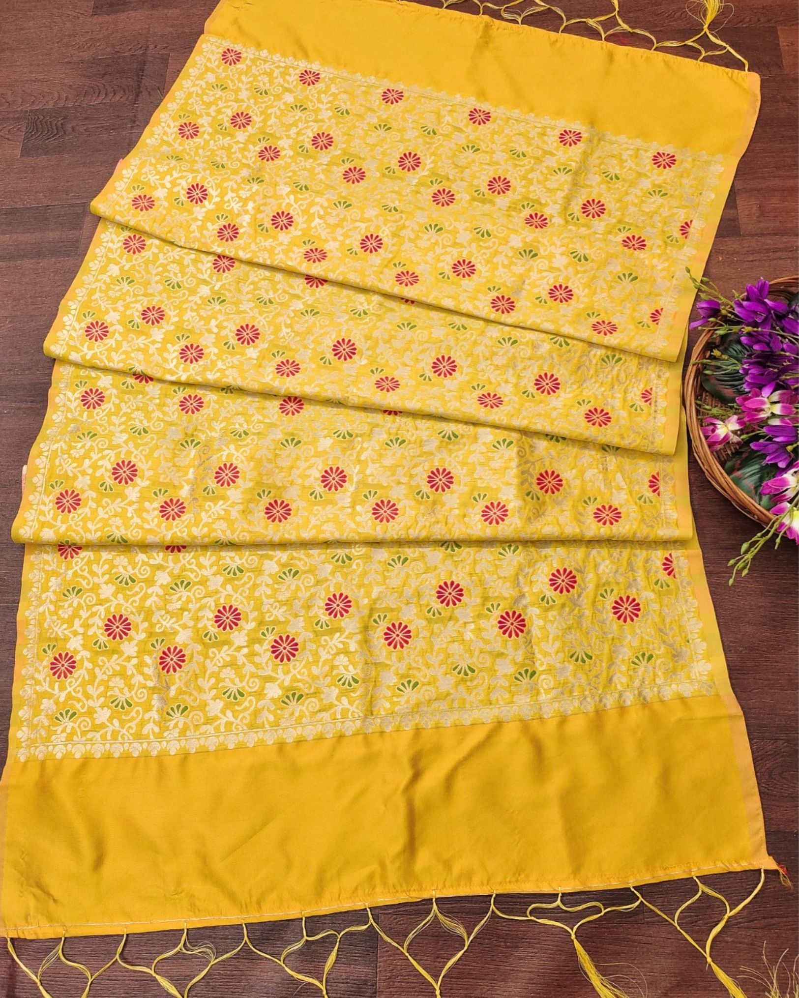 Noor-e-Banaras Silk Dupatta Yellow Brocade Weaving