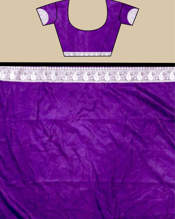 Purple Banarasi Brocade Raw Mango Silk Saree