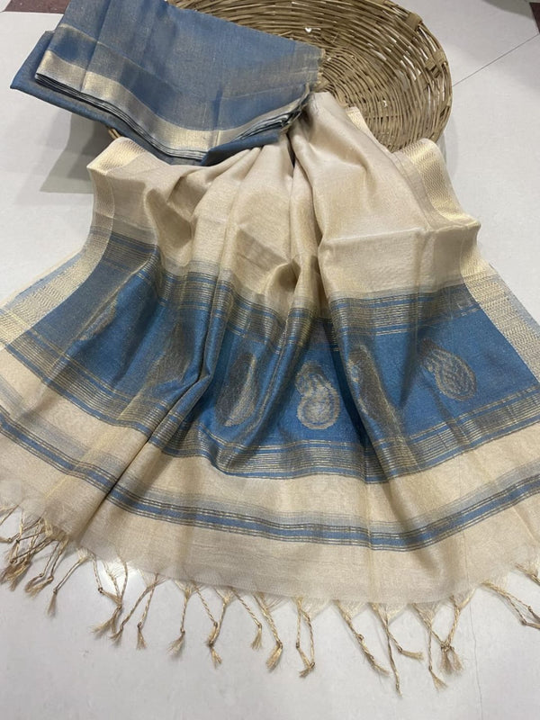 Zari Sutra Calm Blue Maheshwari Silk Sui