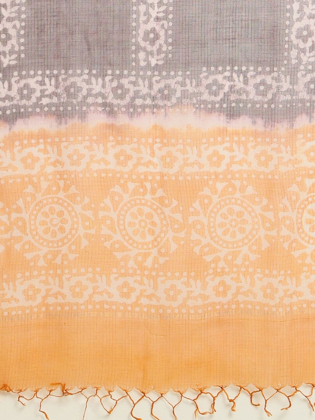 A Pure Cotton Kota Doria Wax Batik Suit is a lightweight ethnic set made from handwoven Kota Doria cotton and decorated with hand wax batik patterns. The suit offers airy comfort with artistic detailing, making it suitable for daily and occasion wear.