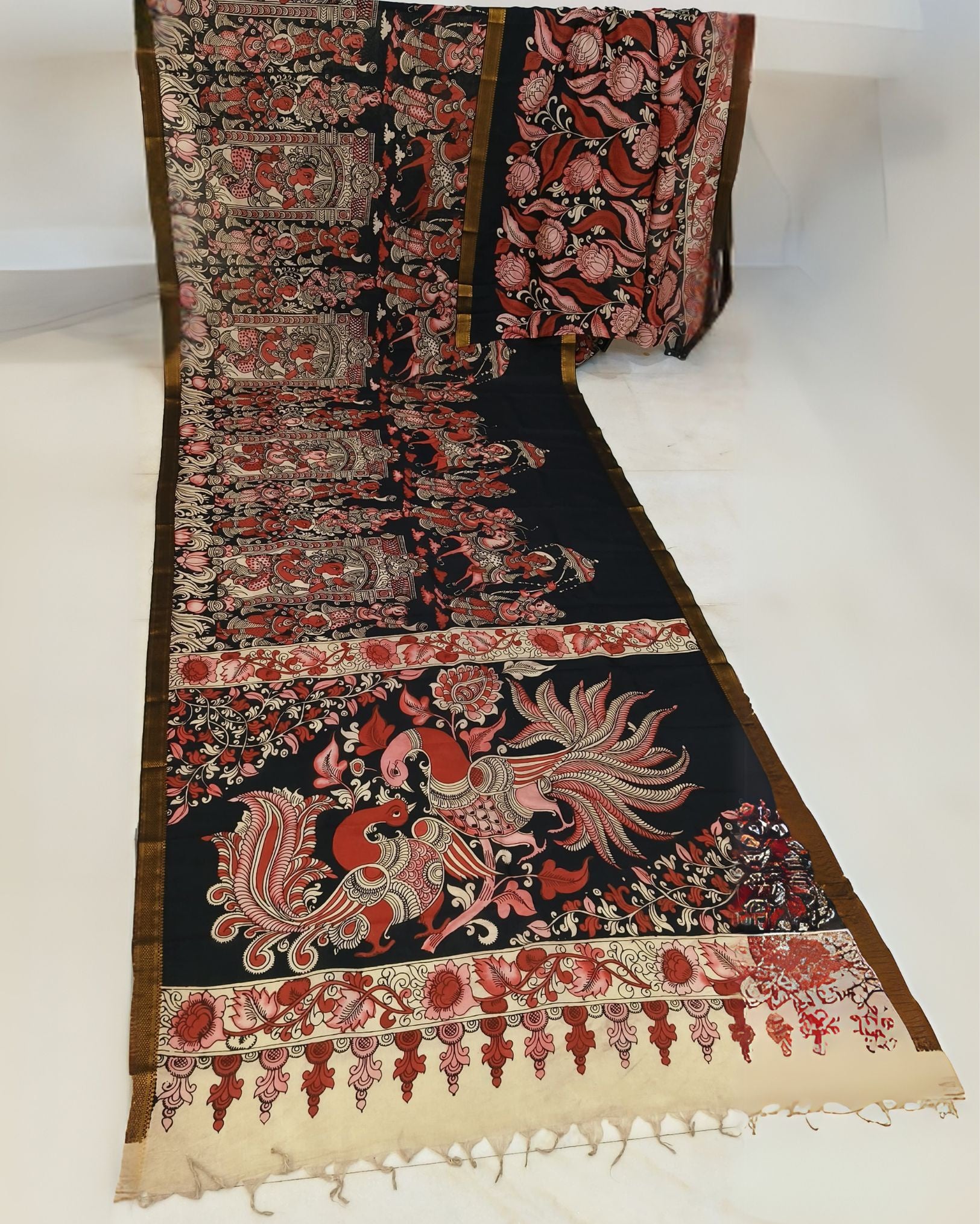 Syaahi Mangalagiri Handpainted Black Traditional Saree