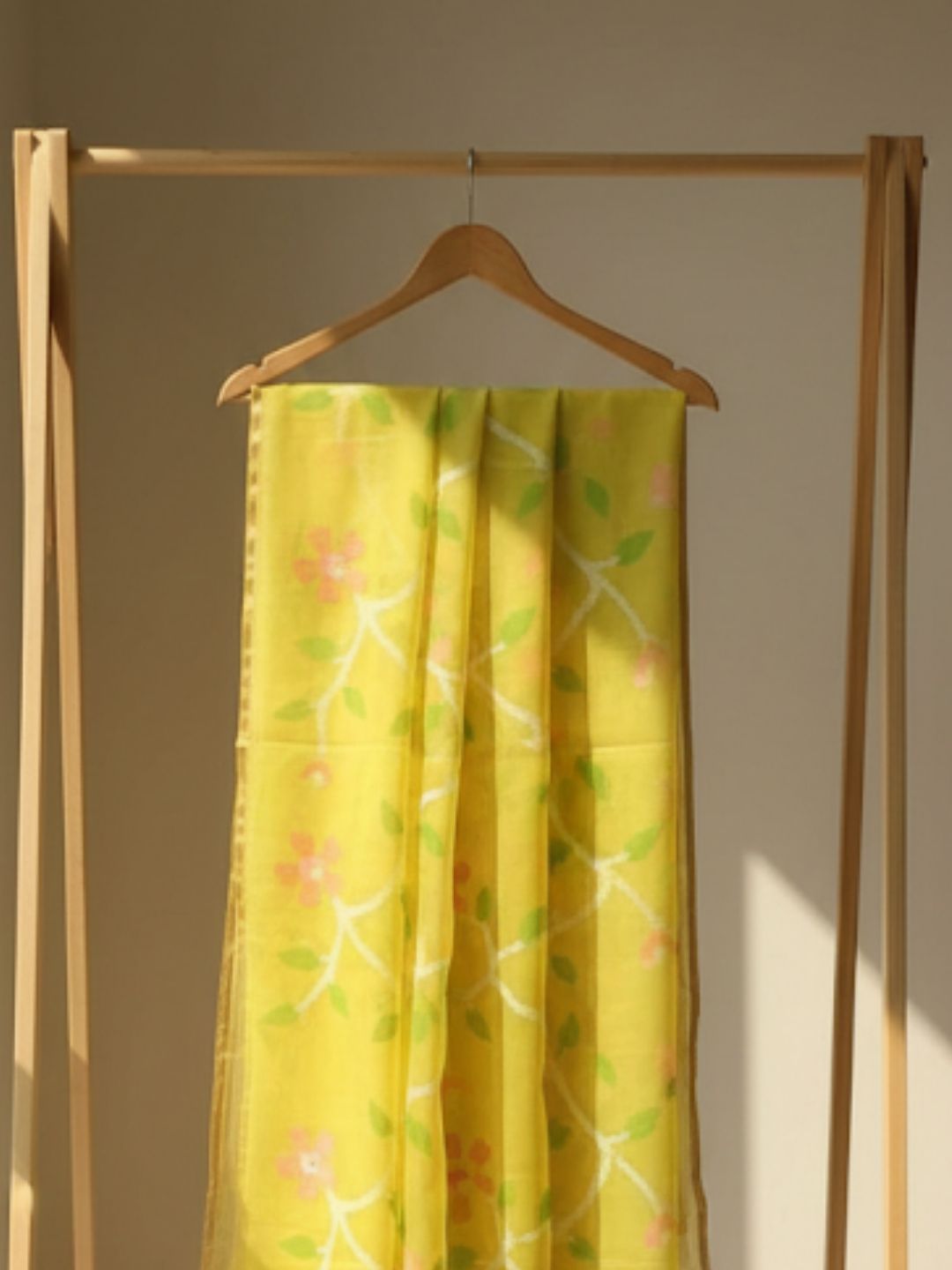 Van Roop Pure Muslin Silk Jamdani Saree Sunny Yellow
