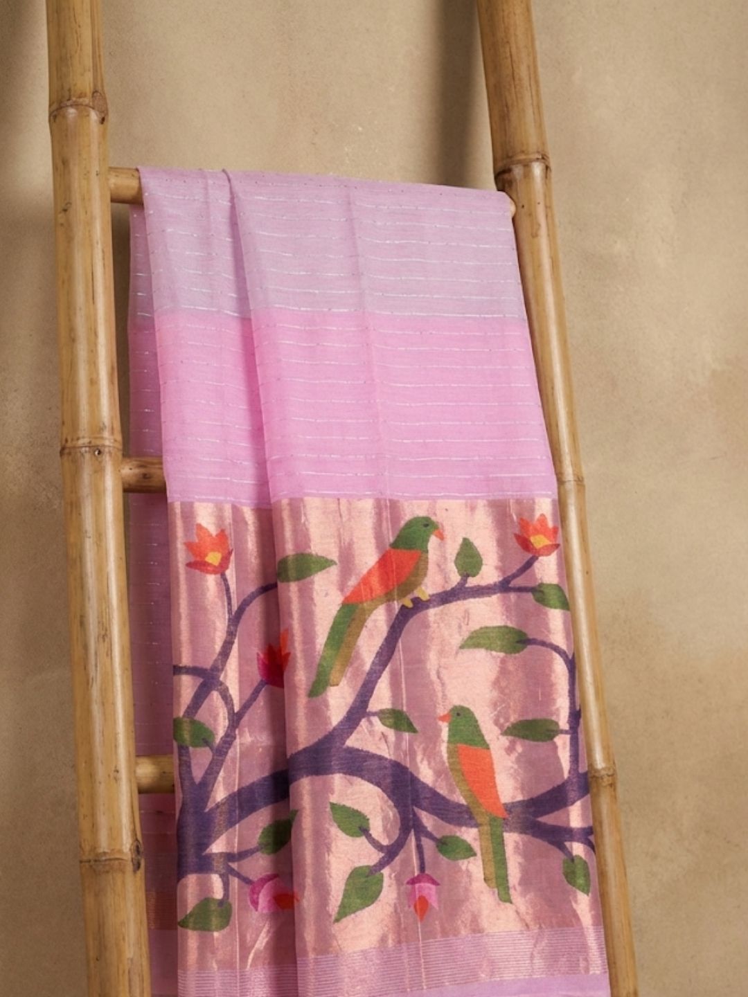 * A handloom woven saree made from pure muslin silk yarn