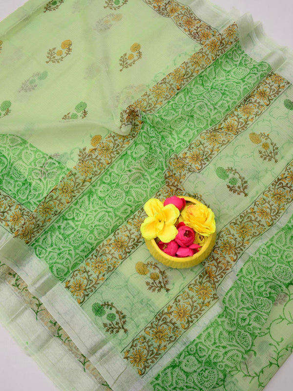 3. How is the Kota Doria Hand Block Print Saree handcrafted?