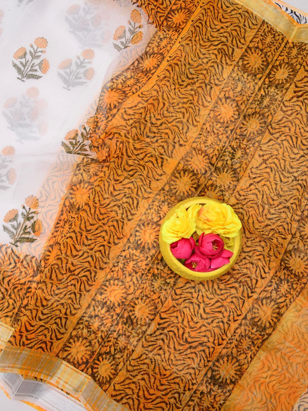 Graceful Kota Doria saree crafted in pure cotton, adorned with intricate hand block prints. Lightweight, airy, and elegant, itโ€™s perfect for festive celebrations or daily wear, showcasing timeless Indian craftsmanship beautifully.